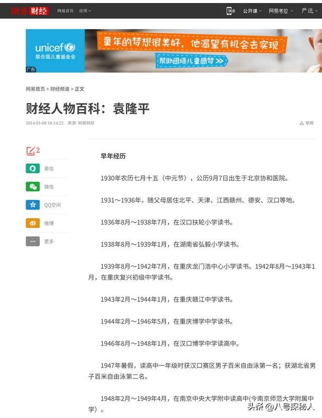 1947年,袁隆平高一时曾获得汉口赛区男子百米自由泳第一名,湖北省男子百米自由泳第二名的良好成绩。