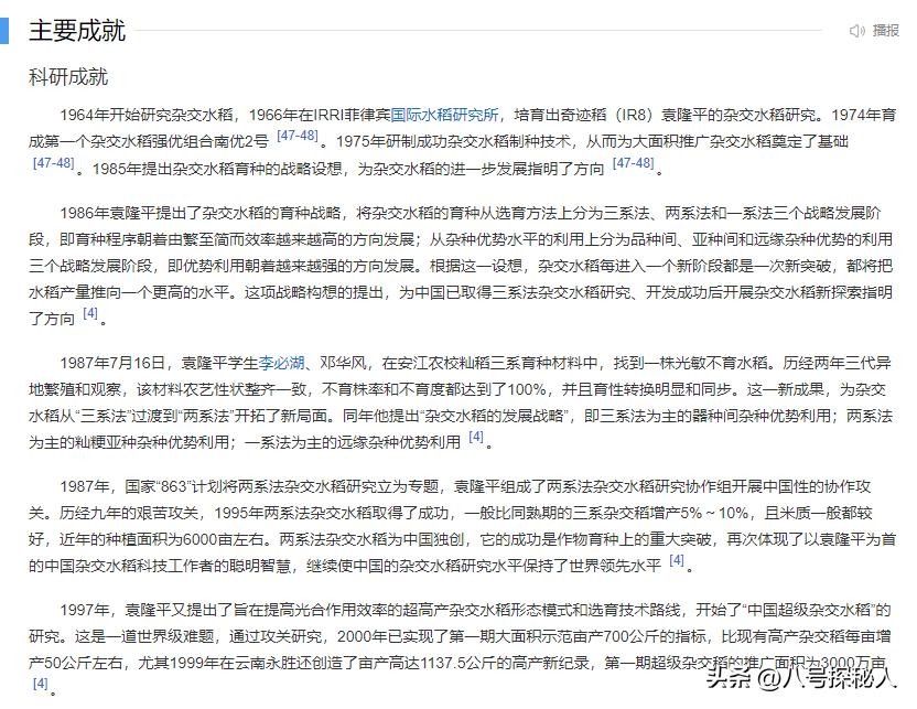 【信息来源:百度百科-袁隆平-主要成就、湛江日报2012年3月19日发布】