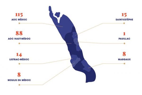 其中包括颇有名气的Chasse Spleen、Les Ormes de Pez、Château de Pez、Château Potensac、Château Poujeaux和Château Siran。