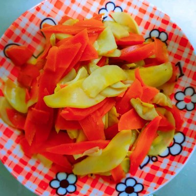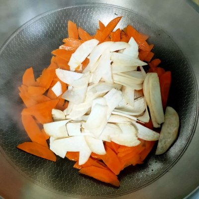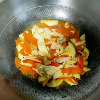 7、好吃又营养的鸡腿菇炒胡萝卜就做好啦。