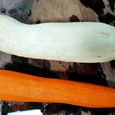 1、鸡腿菇洗干净,胡萝卜洗干净去掉头尾和皮