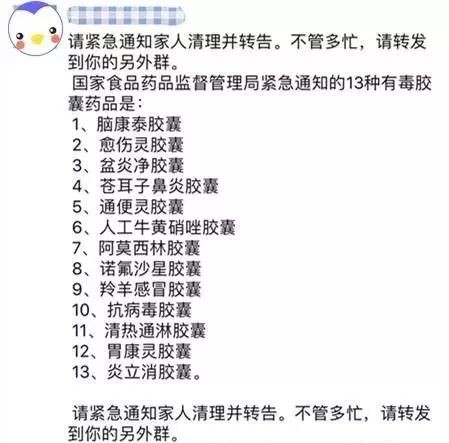 辟谣!网传13种有毒胶囊药品为假新闻!