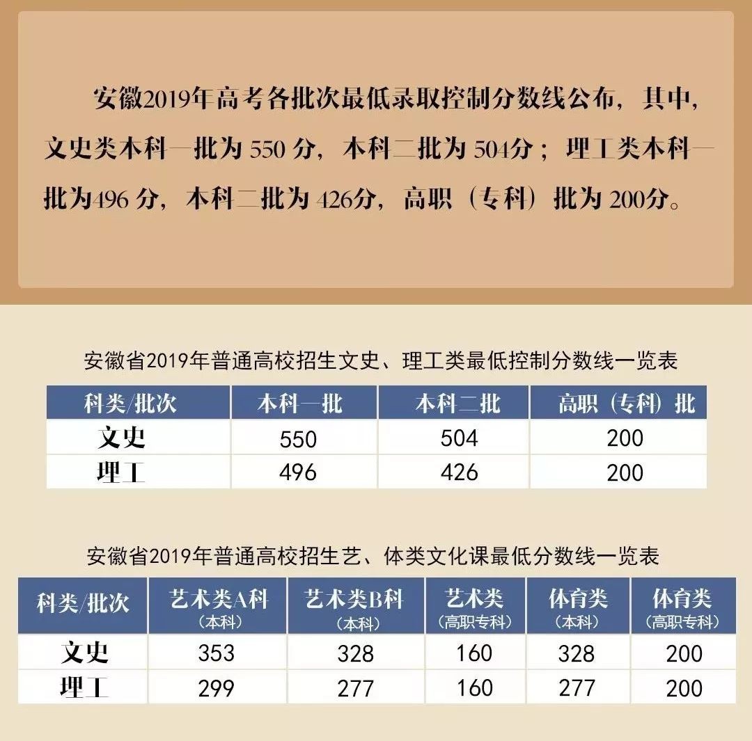 2019年安徽省高考录取分数线