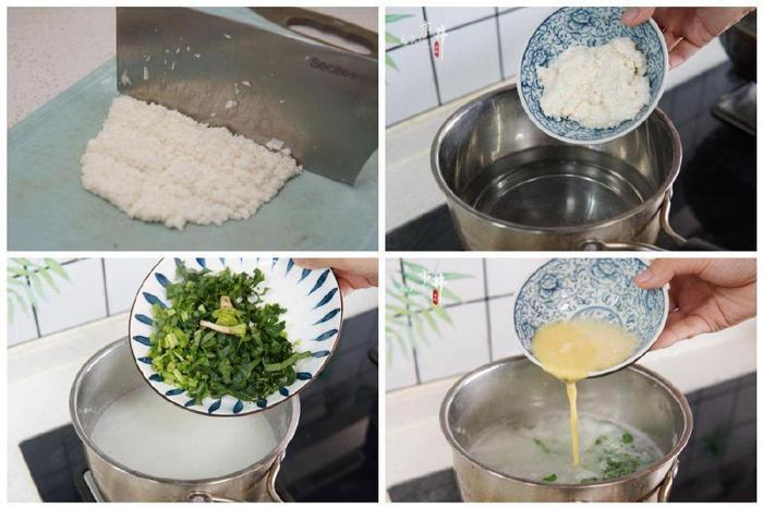 1、山药清洗干净去皮,用刀拍扁后剁成泥状,菠菜清洗干净切碎,菠菜根中所含的营养价值也很高,可以清洗干净放入锅中煮。