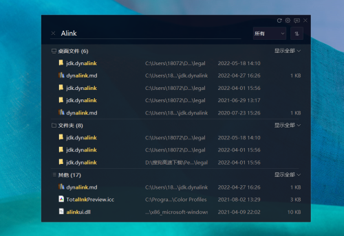 另外它也支持我们快捷搜索电脑本地文件,搜索速度可以说是吊打 Windows 自带的搜索: