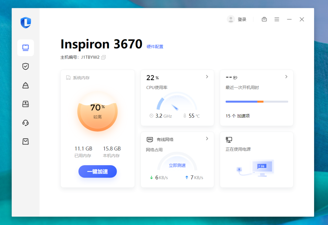 它的功能虽然不如 360 安全卫士、鲁大师来得那么全面,但是我们经常会用到的基础功能比如垃圾清理、安全防御、驱动备份它可以说该有的都有: