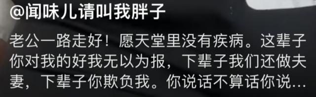 “闻味哥”病逝之后他的妻子发文悼念,称“这辈子你对我的好我无以为报,下辈子咱们还做夫妻”,表达对丈夫的怀念之情。