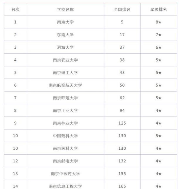 校友会南京市大学排行榜