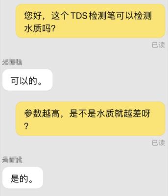 同时,长江日报记者询问相关店铺的客服时,不少客服对“TDS笔能否检测水质”、“检测结果越高是否水质越差”这两个问题都给予了肯定的回复。
