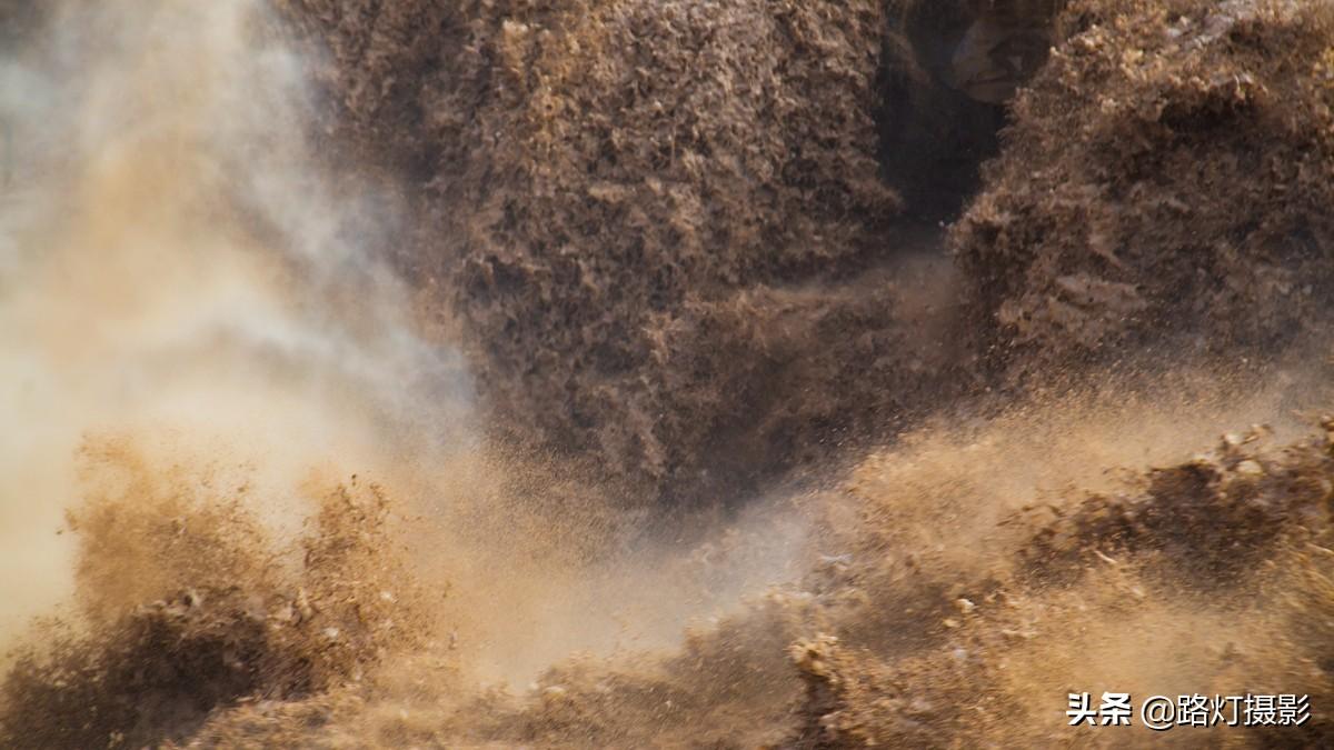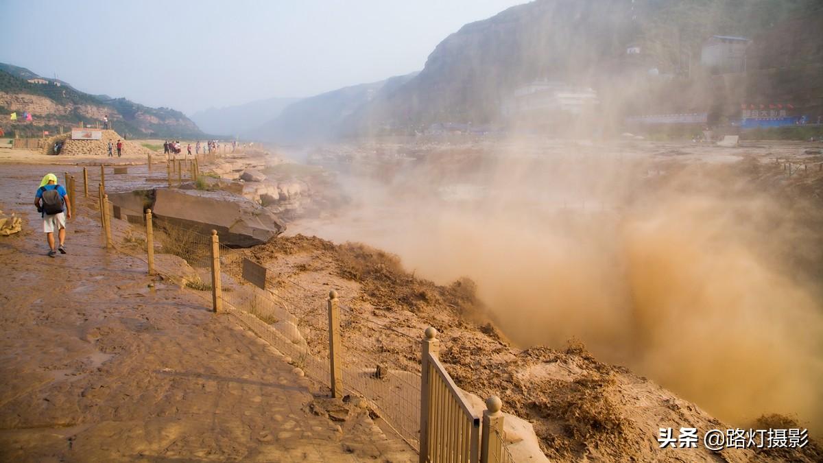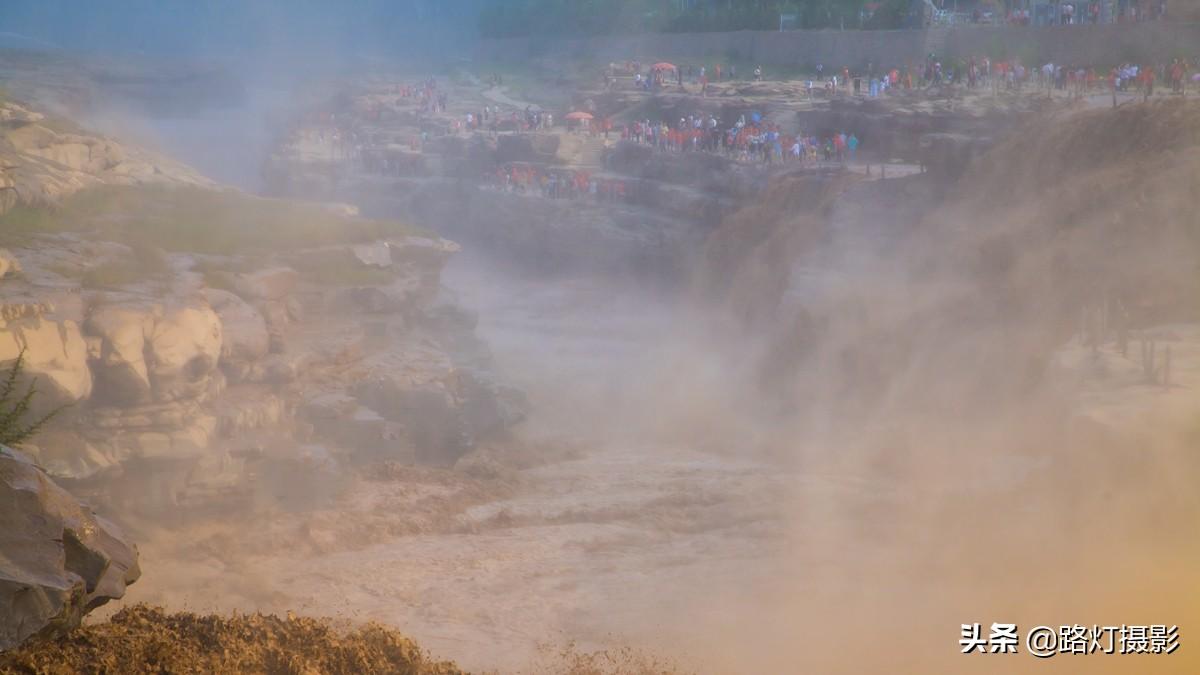 在壶口瀑布拍摄需要注意相机的保护,由于泥沙含量大,溅起的水汽里全是灰尘,相机上、衣服上一会就被一层厚厚的泥浆覆盖。