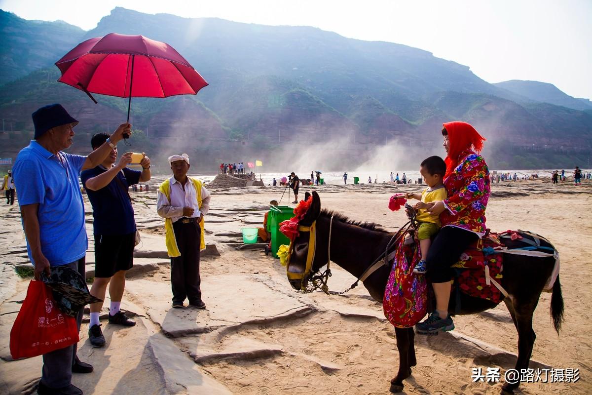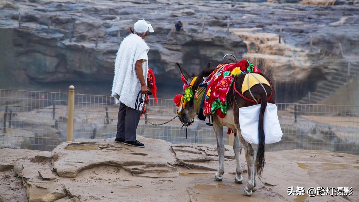 刚走到壶口瀑布景区门口,一群牵着白色羊皮挂和扎着白头巾的最后一代黄河纤夫微笑着迎接我们,他们温暖纯净的笑容,让我们感到无限阳光和温暖。