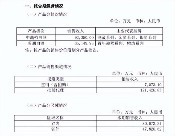 迎驾贡酒2022年第三季度主要经营数据
