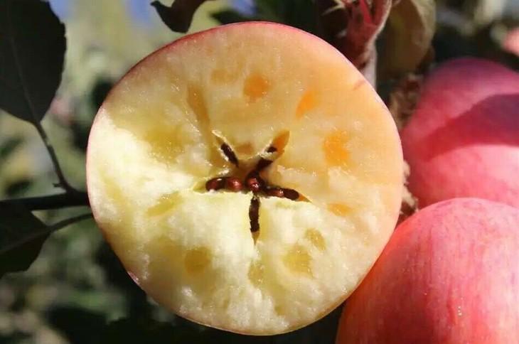 也就是我们所说的冰糖心苹果了,虽然水分少一点。但是这个地方的苹果吃起来可以说是暖到心里。甜度比较高能够达到17到21度,比上面两种苹果的口感更加甜一些。