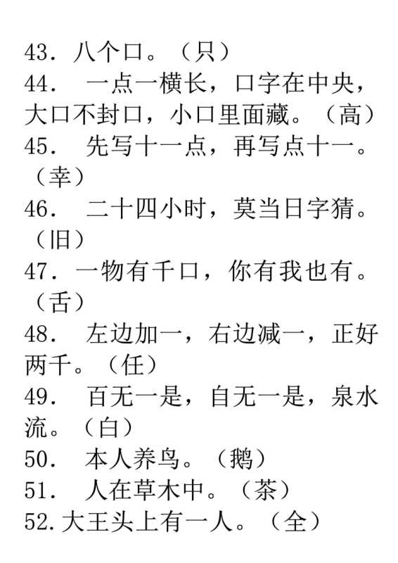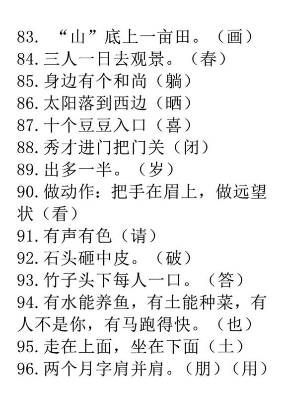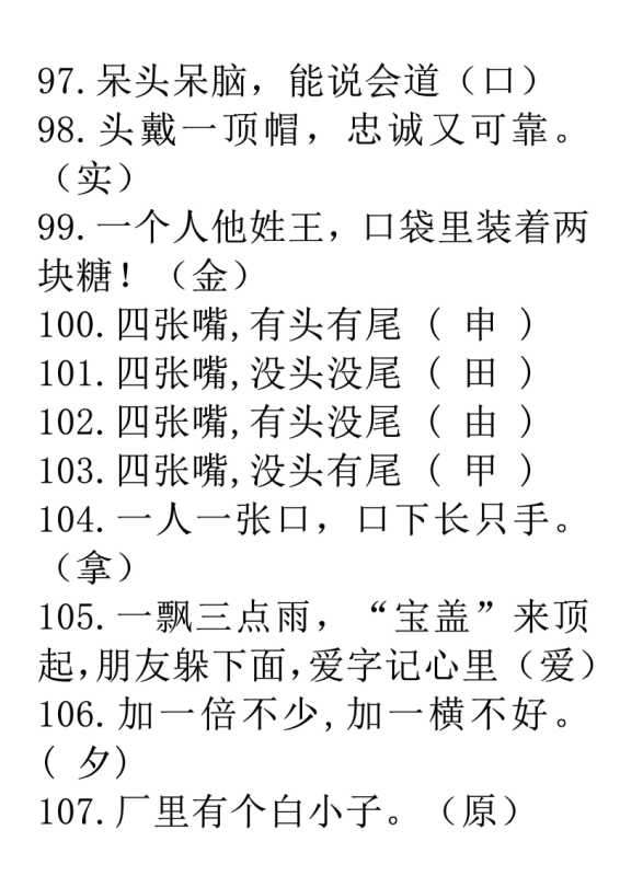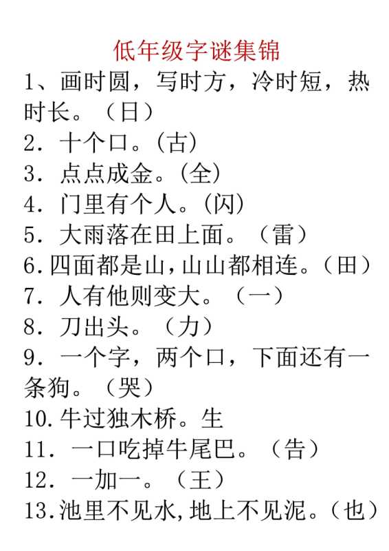 字谜大全一年级(小学一年级字谜集锦!趣味识字)