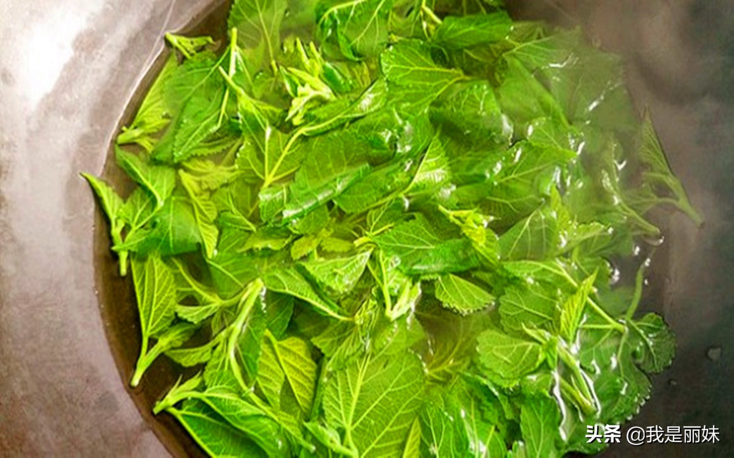 我们将这些新鲜的桑叶采摘回家之后,用清水清洗干净,记得多清洗几遍,因为这种叶子是在户外野生的,接着就将它放在热水里焯水,就可以凉拌了,就像凉拌小菜一样,非常的好吃。
