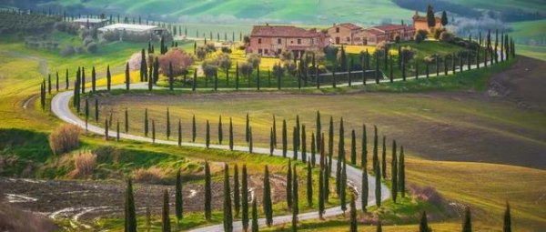 是连绵起伏的山丘,是远远延伸到地平线的葡萄园和橄榄林,是星星点点的农舍和城堡装饰着一座座山头,是古道两旁的一排排古柏树,还是艳阳下的蔚蓝地中海岸和向日葵花海……这里是世人印象中的世外乡村之梦,也是最真实的托斯卡纳之美。