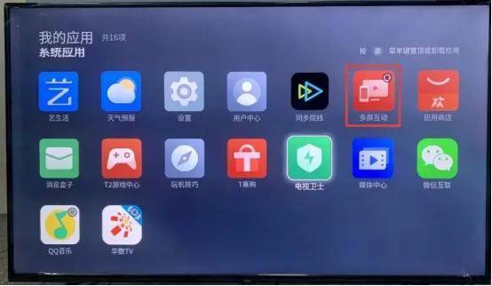 我们需要在电视设置或者我的应用里找到多屏互动这个软件。它可以搭配手机多屏互动使用。手机扫描二维码下载多屏互动,可推送手机里的本地视频、图片、音乐等;