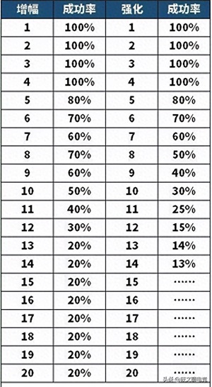 DNF:强化及增幅概率一目了然,官方公布强化及增幅概率