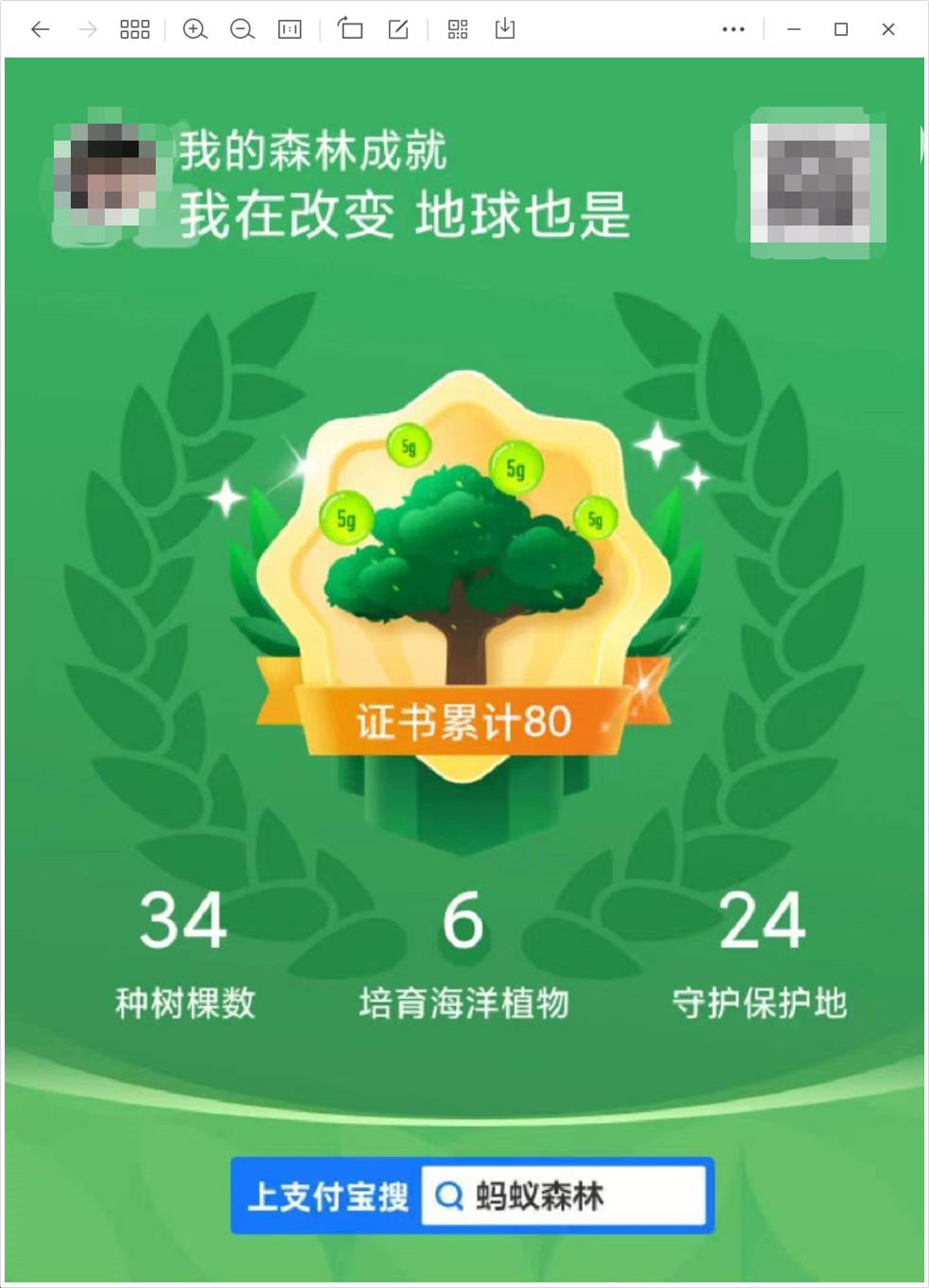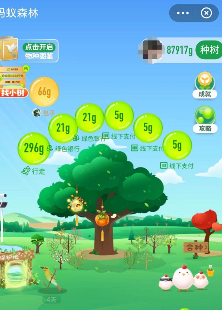 实在惭愧,截至目前,本人已经累计681992g的绿色能量,种下34棵树,保护24块土地,16片保护海域。