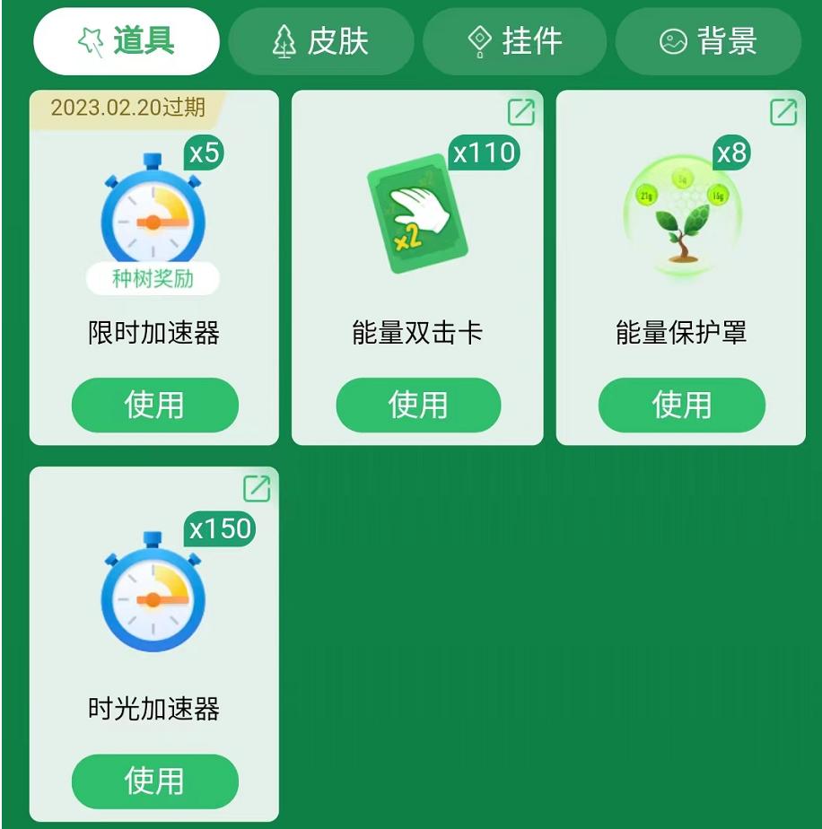 1、蚂蚁森林的道具卡功效