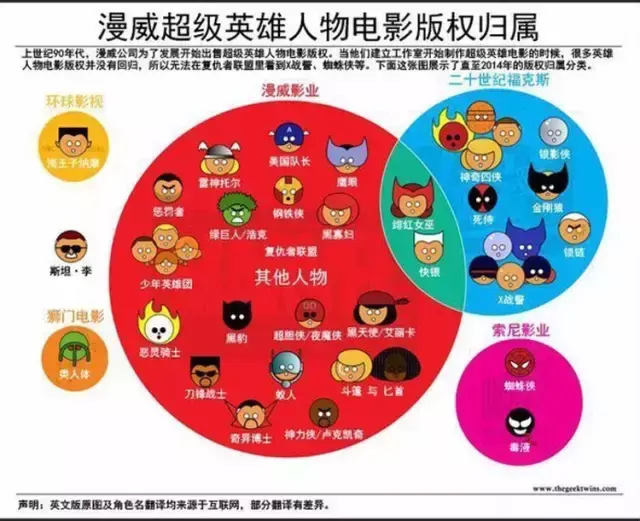 从上图可看出,漫威在迪士尼爸爸的庇护下搞得风声水起外,更有福克斯和索尼等其他好朋友的鼎力支持,自然更是如鱼得水。