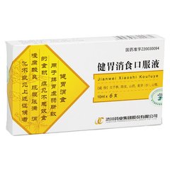 6、健胃消食口服液:由太子参、陈皮、山药、麦芽(炒)、山楂组成。健胃消食。用于脾胃虚弱所致的食积,症见不思饮食,嗳腐酸臭,脘腹胀满;消化不良见上述证候者。