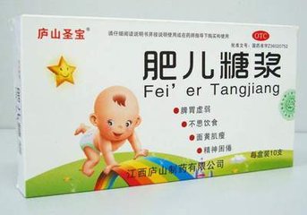 9、肥儿糖浆:由山药、芡实、莲子、北沙参、薏苡仁(炒)、白扁豆(炒)、山楂、白术(炒)、麦芽(焦)、茯苓组成。小儿滋补剂。用于小儿脾胃虚弱,不思饮食,面黄肌瘦,精神困倦。