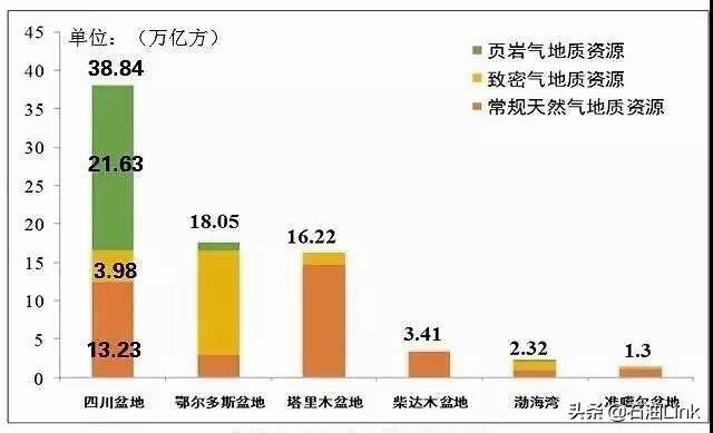 另外,根据自然资源部组织的“十三五”资源评价,四川盆地天然气总资源量38.84万亿立方米,远远超过了声名在外的鄂尔多斯盆地、塔里木盆地,约等于鄂尔多斯、塔里木、柴达木三大盆地天然气资源量的总和。