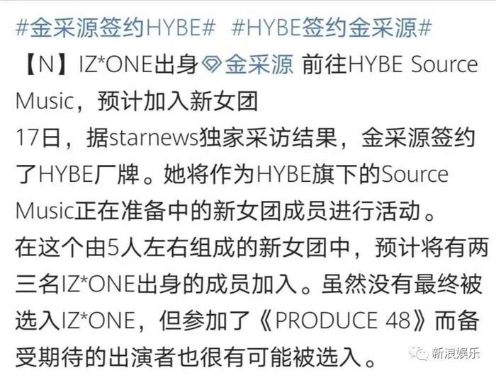 就在两个月后,公司宣布与IZONE 前团员宮脇咲良、金采源签约要组新女团。