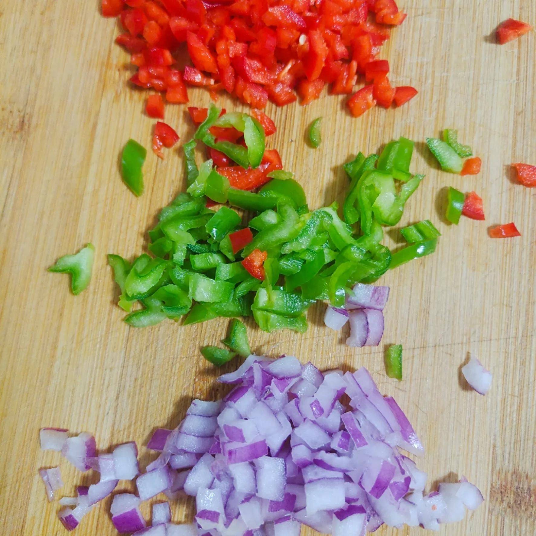 食材:干木耳一小把,青红椒各一点,洋葱一点,大蒜五瓣。
