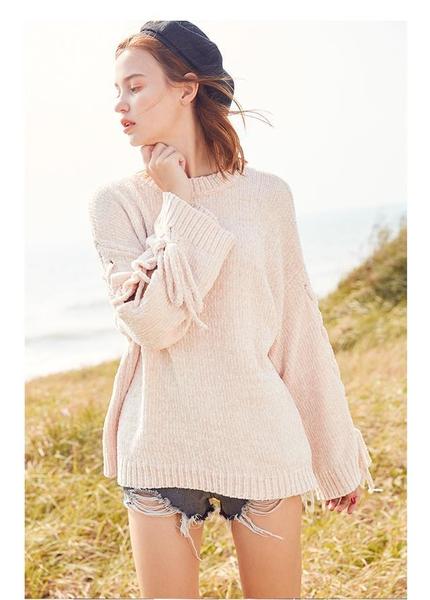今年系带毛衣大热,无论是在领口、后背或是下摆加一个简单的系带,就能让普通的毛衣变得特别起来,很适合用来凹造型。