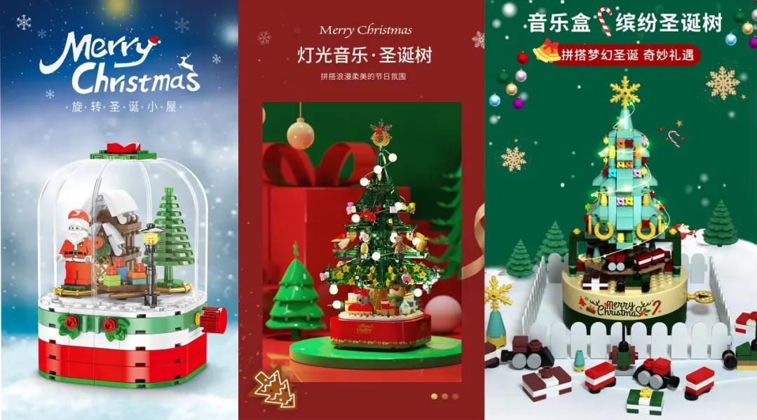 除此之外,这款积木同系列还有旋转圣诞小屋和音乐盒缤纷圣诞树两款,可可爱爱不失童趣。