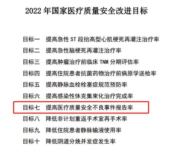 2.2025年/2025 年国家医疗质量安全改进目标中也将不良事件上报列为十大目标之一: