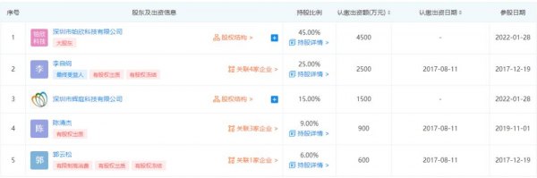 企查查信息显示,今年1月28日,深圳市铂欣科技有限公司和深圳市辉庭科技有限公司分别出资4500万元和1500万元,持有大唐酒业45%和15%的股份。