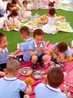 夏天的傍晚是迷人的,天空的云朵在晚霞的映射下,五彩缤纷,幽悠的明艳着自己的美丽。幼儿园为小朋友们准备了丰富的自助餐,有种类丰富的甜点、新鲜应季的水果、美味可口的的菜品、各式各样的主食、还有小朋友们最喜欢的烧烤呢。