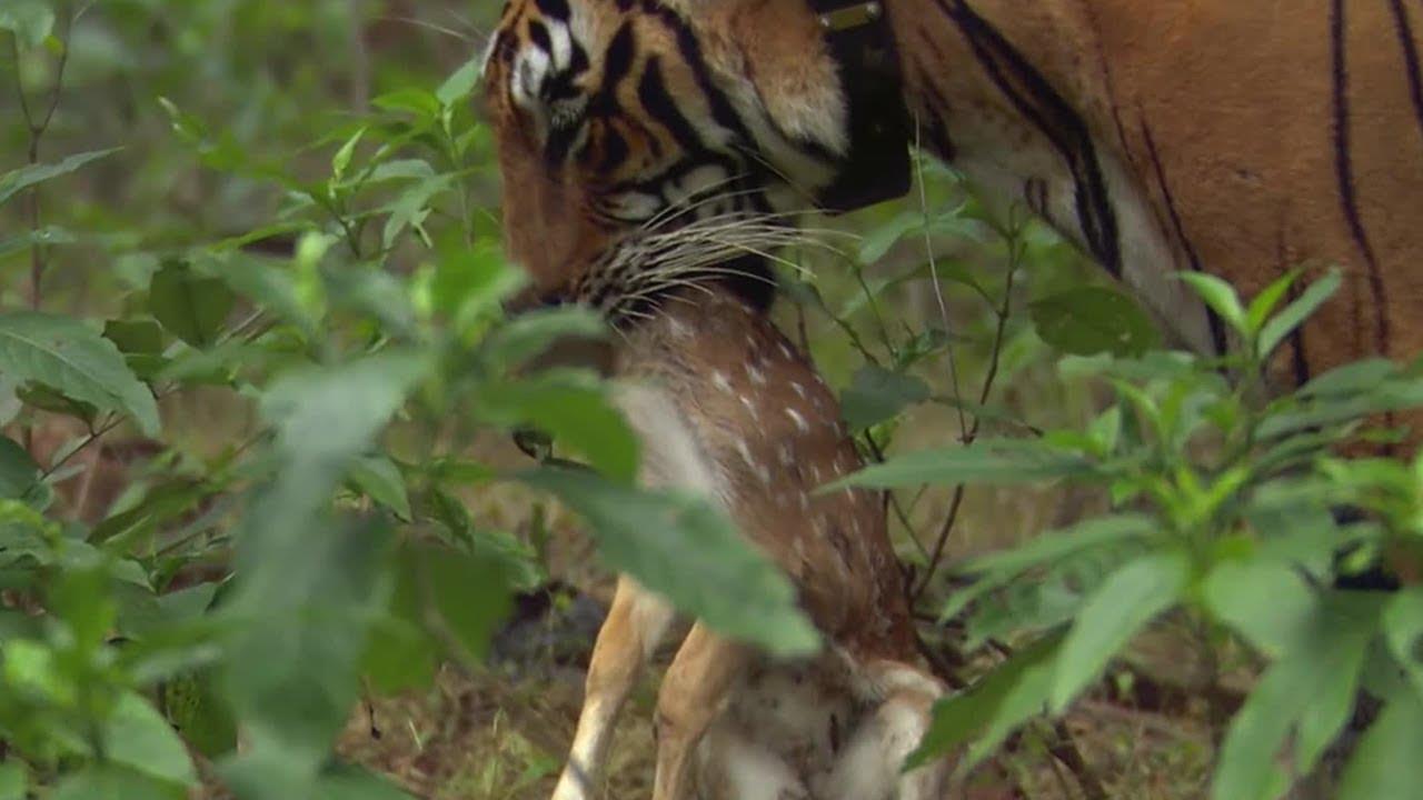 独居的老虎更谨慎,对食物的需求也更小,加上森林无法承载大型兽群的存在,所以老虎的猎物,多以各种鹿类、野猪等中型动物为主。