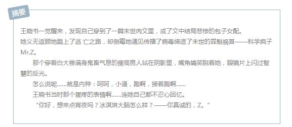 短评:又萌又甜的末世文,小编就是很喜欢,没道理!男主就是个变态超,病娇鬼畜,外边精英内里变态的那种超级带感的~