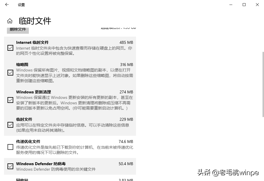 3、 在临时文件夹中我们会看到很多垃圾,勾选需要删除的,点击【删除文件】即可。
