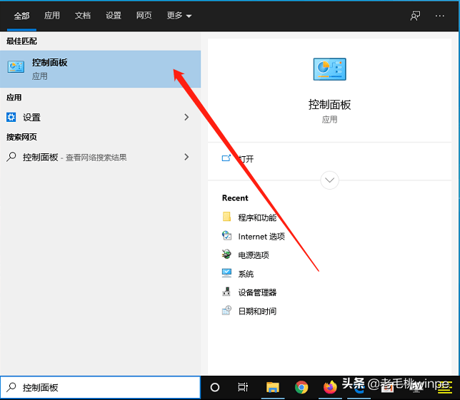 1、 在搜索框输入【控制面板】,点击打开;