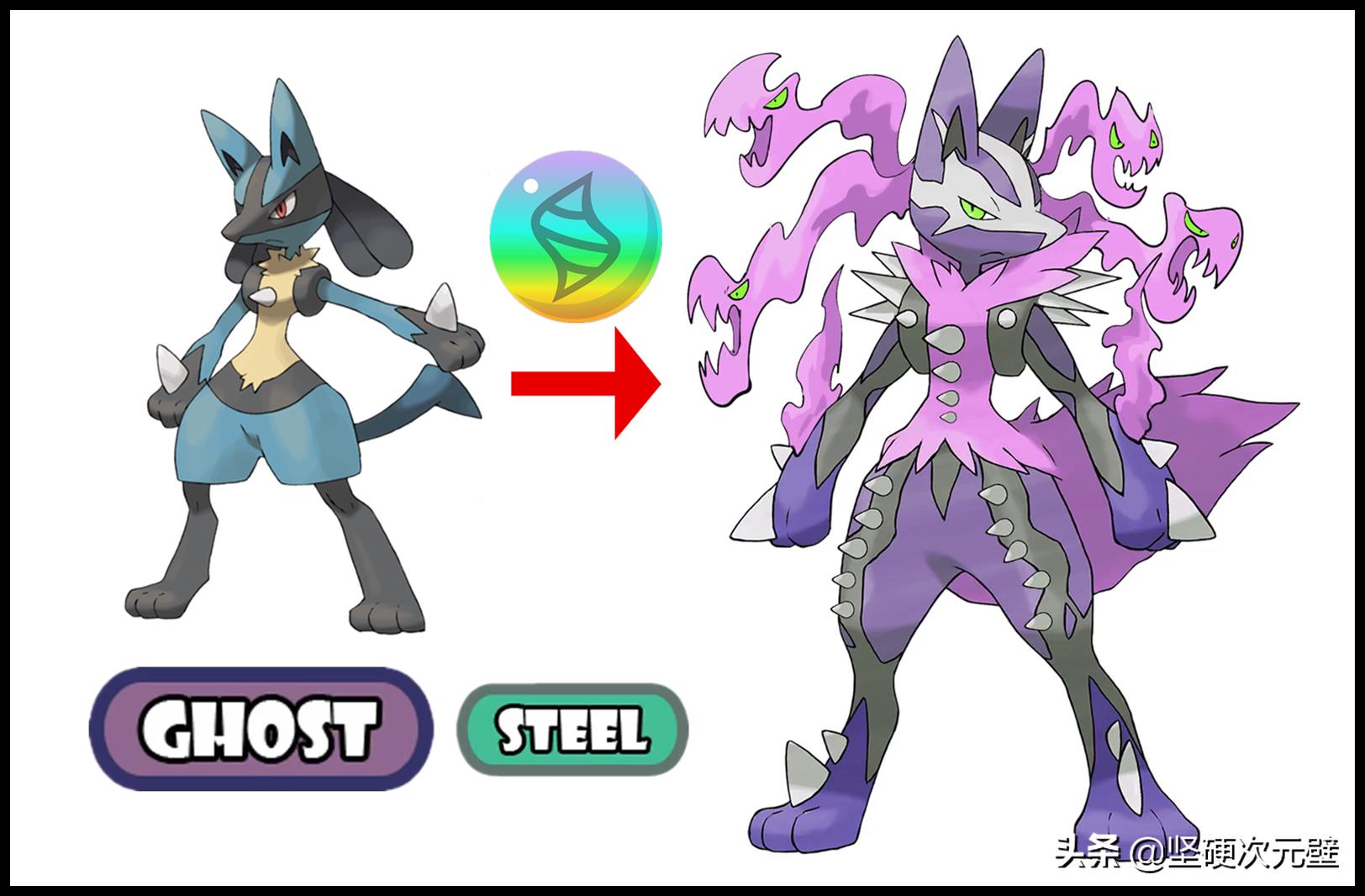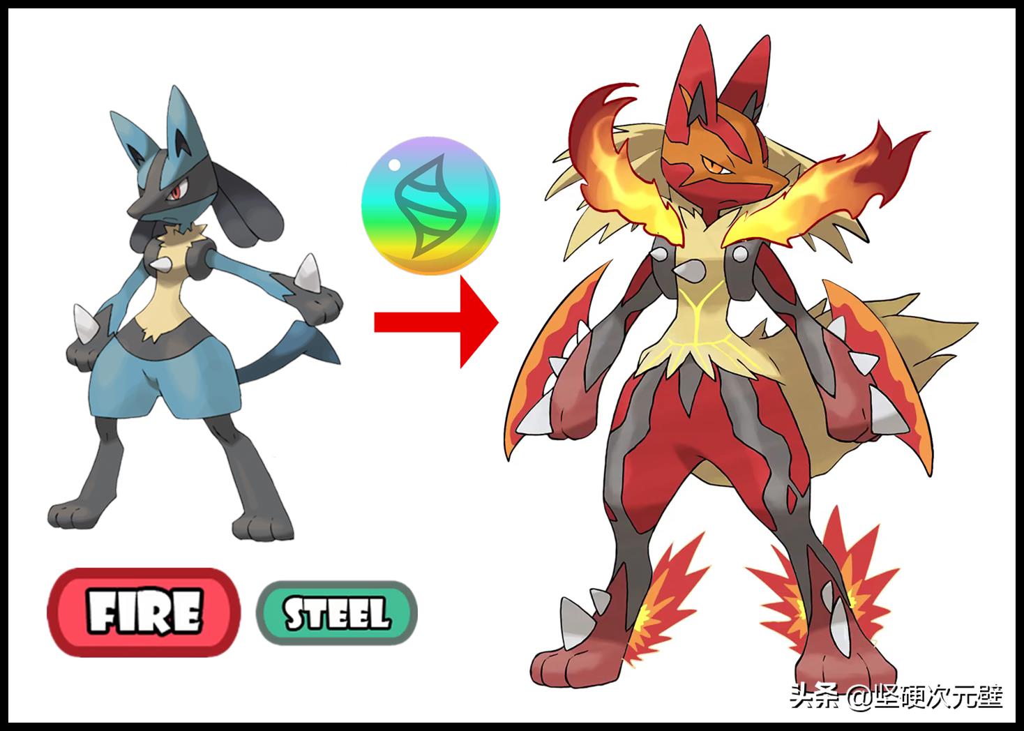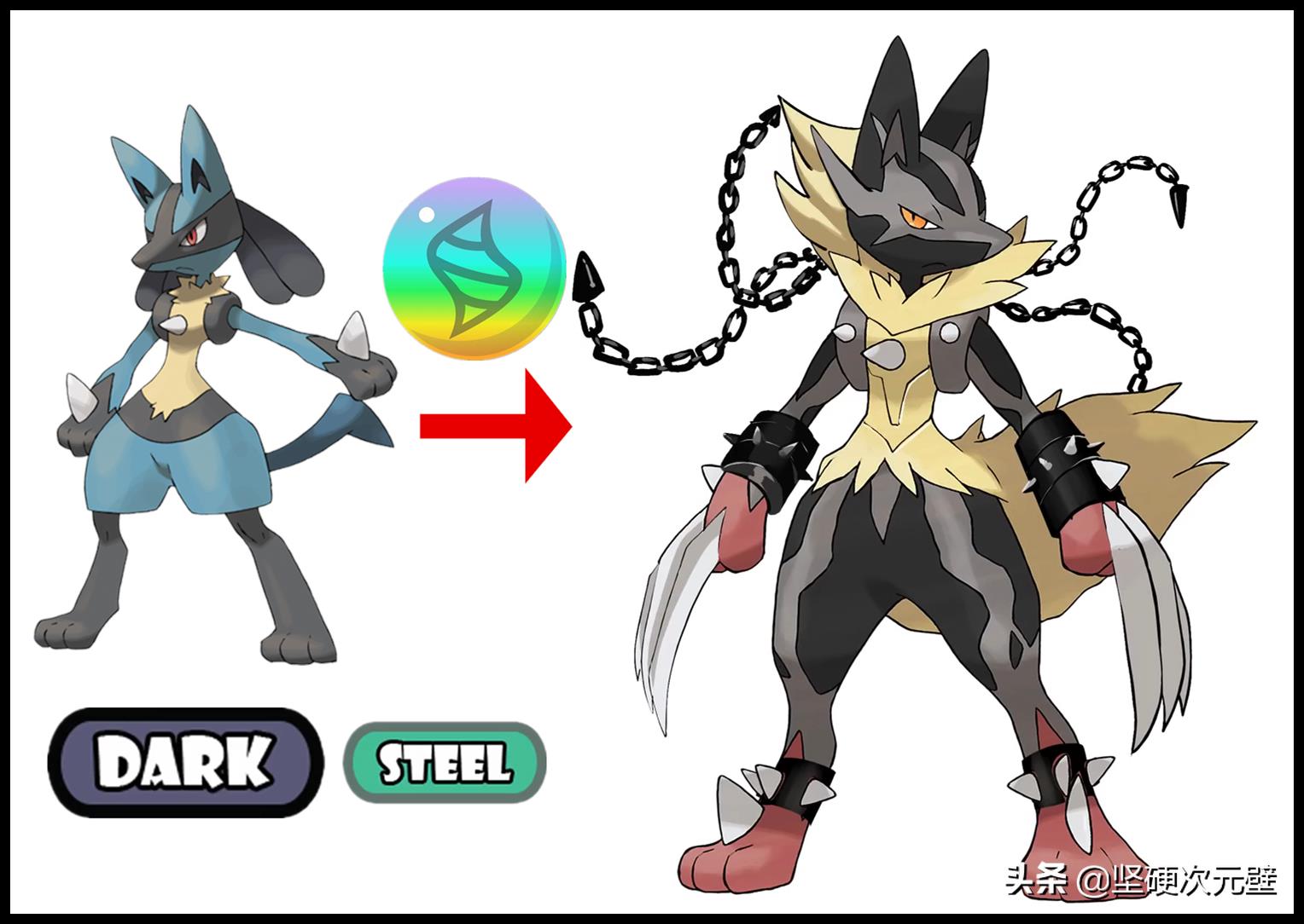 如果路卡利欧也“基因不稳定”的话,在特定的环境中获得进化石,进化成为“恶+钢”属性的mega形态,长出了金刚狼一样的利爪,脑后更是伸出了几条“地狱锁链”,攻击手段非常多啊!