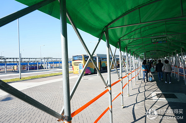 不知道是不是因为还没有完全的建设好,候车排队区域的设施非常的简陋,仅仅使用简易遮阳棚弄起一条走道。