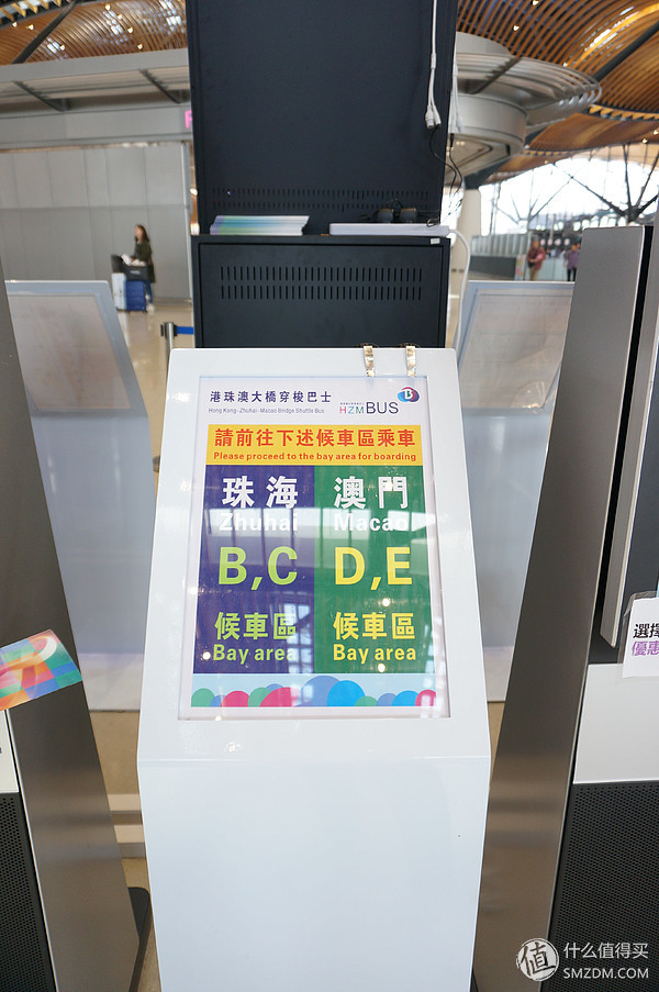 自助购票机非常的多,每台的旁边都有一块牌子指示你应该去的候车区。我们去澳门需要前往DE候车区。指示的易拉宝非常的醒目完全不会走错。