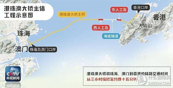港珠澳大桥工程包括三项内容:一是海中桥隧主体工程;二是香港、珠海和澳门三地口岸;三是香港、珠海、澳门三地连接线。其中,粤港澳三地共同建设的主体工程长约29.6公里,由长达22.9公里的桥梁工程和6.7公里的海底沉管隧道组成,隧道两端建有东、西两个人工岛。