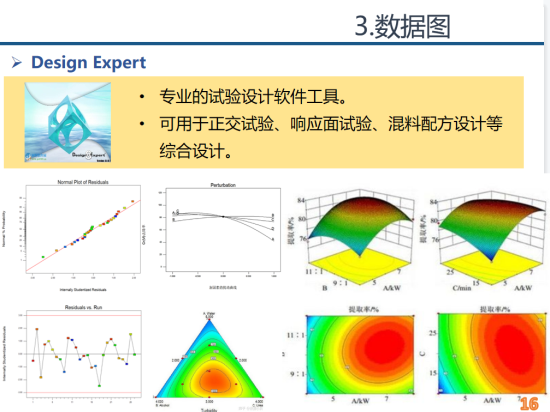 还有design expert这个软件可以绘制各种响应面数据图,如有需要进行正交实验的设计、多因素控制实验法、混料的配方设计都可以上手这个软件来设计实验和处理数据。