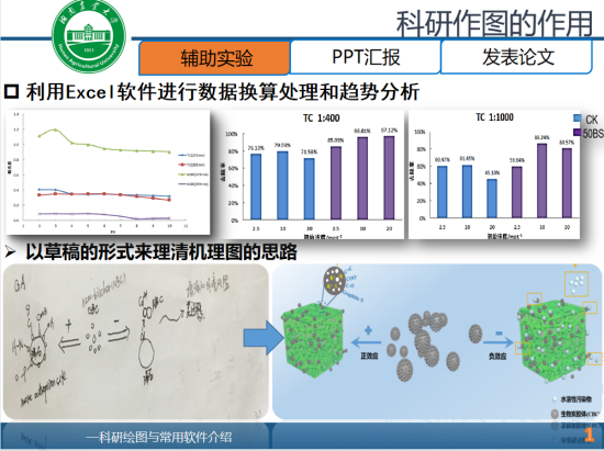其一就是用来作为辅助试验,比如利用excel软件进行简要的数据换算处理,或者分析实验数据随环境因素变化的趋势,也可以是图形摘要或者吉利图的草稿绘制,先以一个大致的思路或者理清一个简要的框架,再逐步完善,增添内容,一步步优化细节来达到自己理想中的效果。
