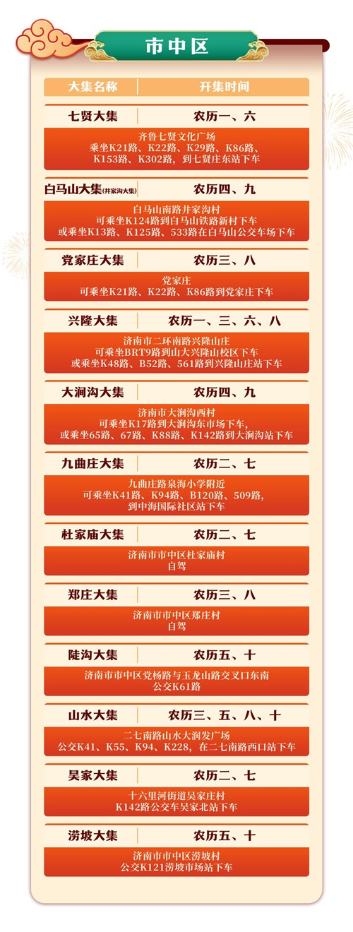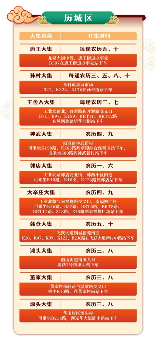 这里有一份超实用的济南市赶集攻略,涵盖多个集市的地址和交通线路,快叫上家人朋友,一起逛集市,备年货,把幸福和年味一起带回家!