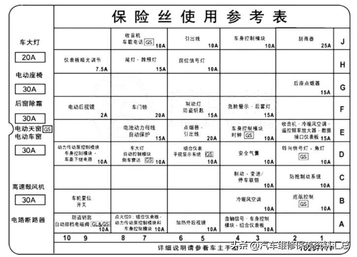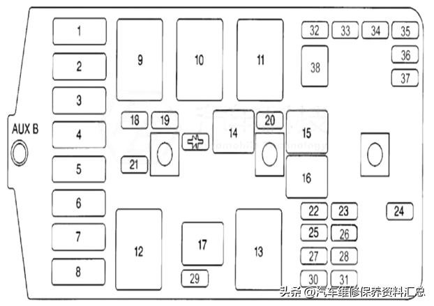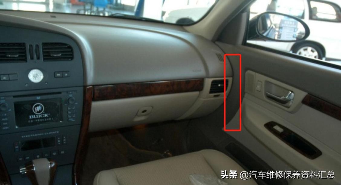车内保险盒: 该保险丝盒位于乘客侧仪表台右侧。