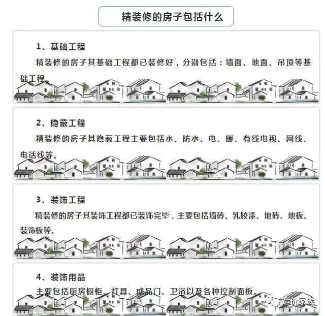 精装修的房子其基础工程都已装修好,分别包括:墙面、地面、吊顶等基础工程。
