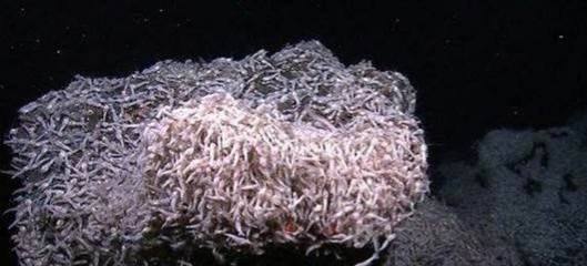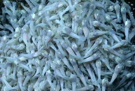 2011年4月,研究小组在距离海面5公里的海床处发现多个火山口,且出现成群结队的白色盲虾在附近聚集。从火山口涌出的热泉高温达摄氏450℃,足以让「铅」熔解,不过这些海虾非但没有被煮熟,还能安然无恙的成群结伴悠游,令人十分好奇。这种虾全身成白色,因为这种虾没有眼睛,所以把这种虾称之为白色盲虾。