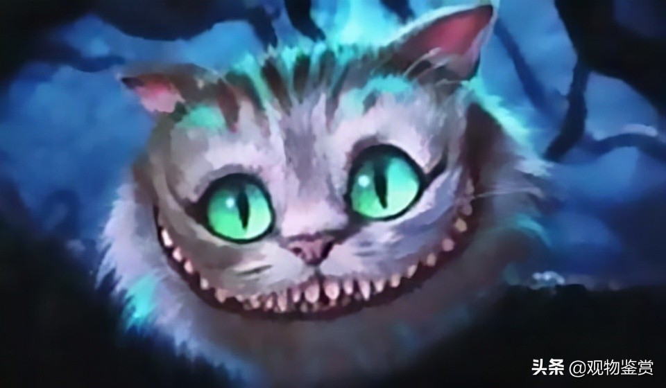 《爱丽丝梦游仙境》因为柴郡猫的存在而加分不少。柴郡猫占据了半边脸的那双硕大的眼睛加上月牙型的嘴巴、锯齿样的牙齿组成一张典型的笑脸,它十分从容优雅与幻化无常,淡定自若。